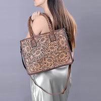 American Darling Hand Tooled Floral Leather Tote | Western Briefcase Bag