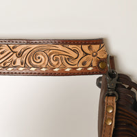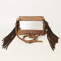 The top flap is accented with vegetable-tanned American cowhide leather, intricately hand-tooled in a classic Western floral pattern. Trimmed with full-grain leather and fitted with a braided shoulder strap, this bag delivers rugged elegance and functional design in one.Durable YKK hardware, secure turn-lock closure, and a spacious interior make this Western clear purse both practical and refined.