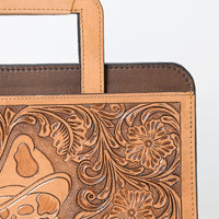 Handcrafted by American Darling, this Western briefcase bag is made from genuine leather with fully hand-tooled floral carving, showcasing the precision and artistry of traditional Western craftsmanship. The structured silhouette offers a comfortable carry while maintaining durability and long-lasting performance for daily business, travel, or meetings.