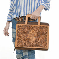 American Darling Western Hand Tooled Leather Briefcase Bag Genuine Leather