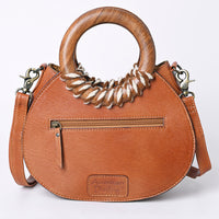 ADBG1227 Clutch Genuine Western Leather Handbag – Genuine Hand Tooled Floral with Round Wooden Handle Women Bag