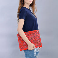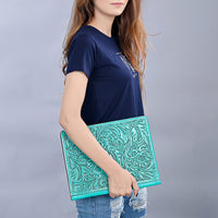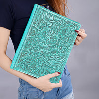 American Darling Western Hand-Tooled Leather Portfolio Bag - Floral Carved Genuine Leather Case