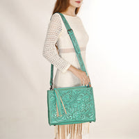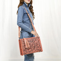 American Darling Hand-Tooled Western Leather Crossbody Bag - Genuine Floral Carved Artisan Purse
