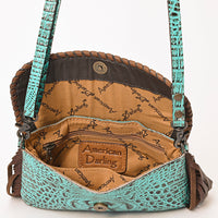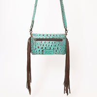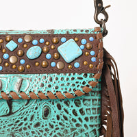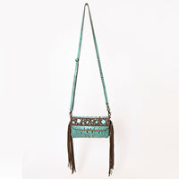 ADBG1241 Turquoise Embossed Leather Crossbody Bag - Studded Flap with Fringe Accents