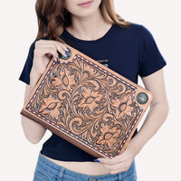 American Darling Hand-Tooled Genuine Leather Western Portfolio Bag - Floral Carved Document Case