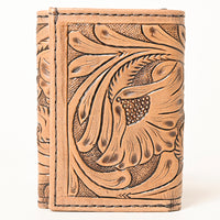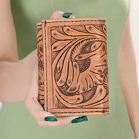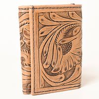 ADBG1268 Hand-Tooled Leather Card Wallet - Western Floral Minimalist Bifold
