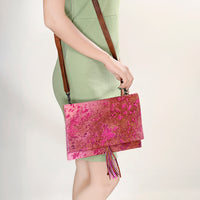 - Premium genuine leather combined with hair-on cowhide tassel detailing