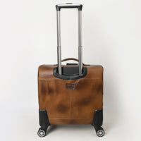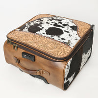 This handcrafted Western trolley bag by American Darling blends genuine leather, hair-on cowhide, and detailed hand-tooled floral carving. Designed for effortless travel, it features smooth-rolling wheels, a sturdy telescopic handle, and a comfortable top carry handle. The well-compartmentalized interior keeps essentials organized during flights, road trips, or daily commutes.