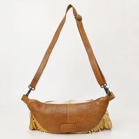 ADBG1297 Cowhide Fringe Belt Bag - Western Fanny Pack with Hand Tooled Leather Front