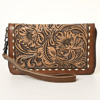 ADBG1309 Hand-Tooled Western Leather Crossbody Wallet - Genuine Cowhide Bag by American Darling
