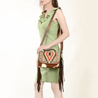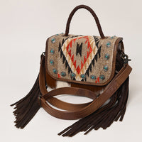 ADBG1388 Wool Saddle Blanket Crossbody Genuine Western Fringes Leather Women Bag
