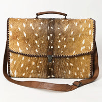 ADBG1420 Spotted Deer Hair-On Leather Briefcase - Western Executive Bag