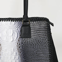 Elevate your everyday look with this high-fashion crocodile-embossed tote in a striking black and white gradient. Designed for bold professionals and fashion-forward cowgirls, this structured leather tote offers both refined elegance and Western flair.