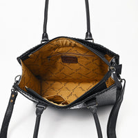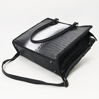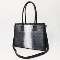 ADBG1422 Crocodile Embossed Black & White Leather Tote - Elegant Western Office Bag