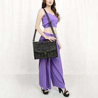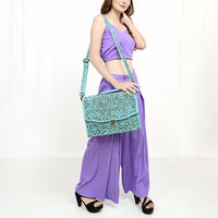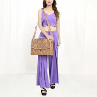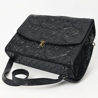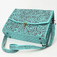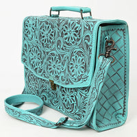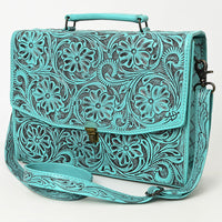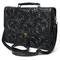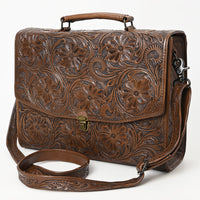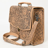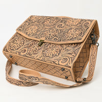 ADBG1437 Handtooled Leather Messenger Bag - Floral Carved Western Satchel