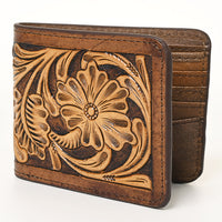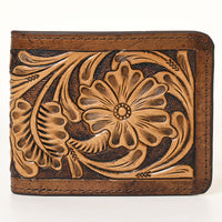 ADBG1438 Handtooled Leather Western Wallet - Floral Carved Bifold