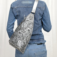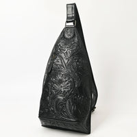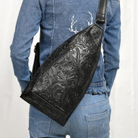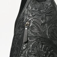 ADBG1443 Hand Tooled Leather Western Sling Bag - Midnight Floral Crossbody