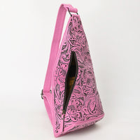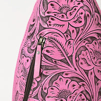 ADBG1443 Pink Hand Tooled Leather Western Sling Bag - Midnight Floral Crossbody