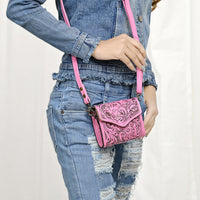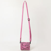 ADBG1444 Pink Hand Tooled Leather Wallet Bag - Western Floral Mini Satchel