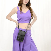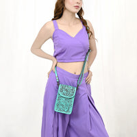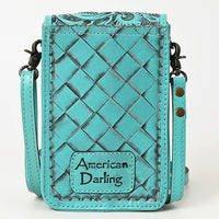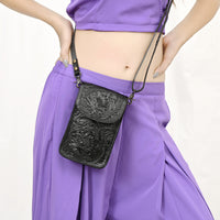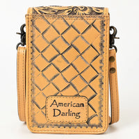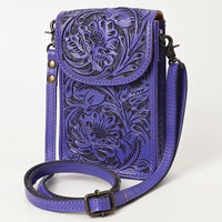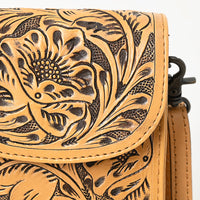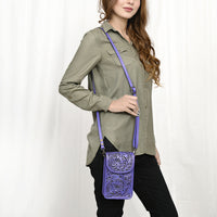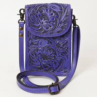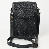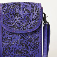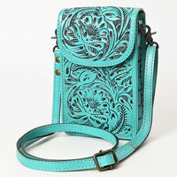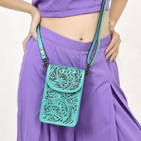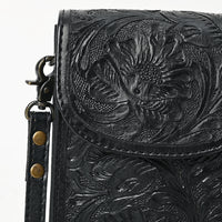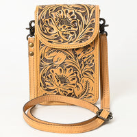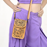 ADBG1448 Hand Tooled Leather Phone Crossbody Bag - Western Floral Vertical Pouch