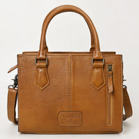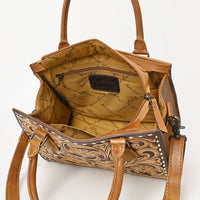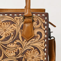 ADBG1453 Hand Tooled Leather Western Satchel - Floral Tan & Brown Convertible Shoulder Bag