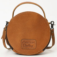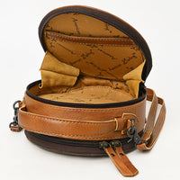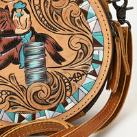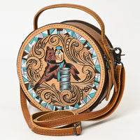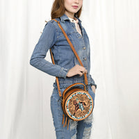 ADBG1457 Round Hand Tooled Barrel Racer Leather Bag - Western Cowgirl Crossbody