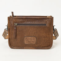 ADBG1460 Hand-Tooled Leather Crossbody Bag with Cowhide Inlay and Floral Strap - Western Heritage Style