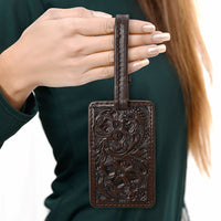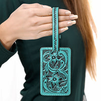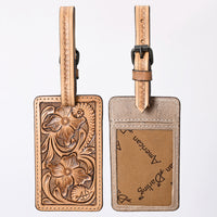 Bring elegant Western flair to your travels with this handcrafted leather Card Holder from American Darling. Featuring intricate floral hand tooling and a contrasting black etching design, this ID tag blends functionality with true artisan beauty. A clear ID window on the reverse makes it easy to identify your luggage, bags, or cases.