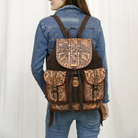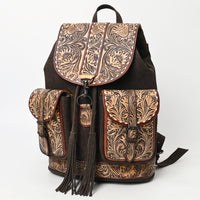 ADBG1468 Hand-Tooled Leather Western Backpack - Floral Design with Tassels by American Darling