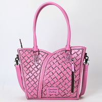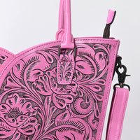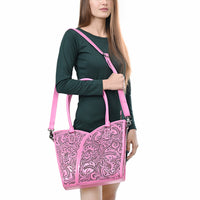 ADBG1473 Pink Hand-Tooled Leather Tote Bag - Western Floral Dual Carry by American Darling