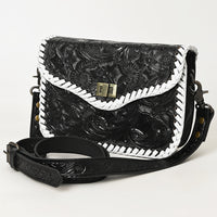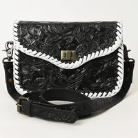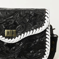 ADBG1475 Tooled Leather Crossbody Bag with Whipstitch Trim