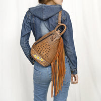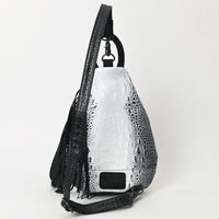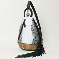 ADBG1482 Croc Embossed Leather Fringe Sling Backpack with Tooled Base - Western Crossbody Bag