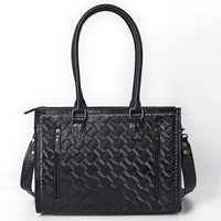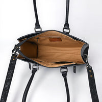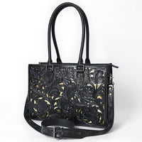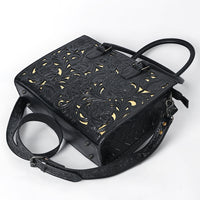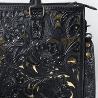 ADBG1492 Black & Gold Hand-Tooled Leather Tote Bag - Western Floral Design