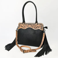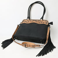 ADBG1500 Black Leather Tote with Tooled Yoke & Fringe - Western Structured Handbag