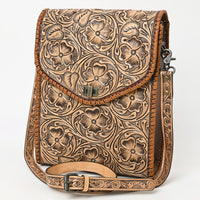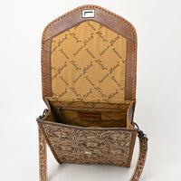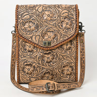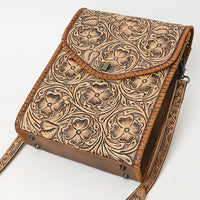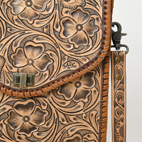 ADBG1505 Natural Hand-Tooled Leather Crossbody Bag - Full Floral Carving & Whipstitch Trim