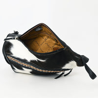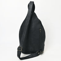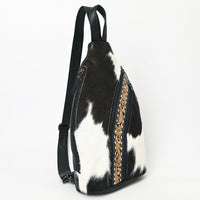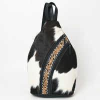 ADBG1514 Black & White Cowhide Sling Backpack with Tooled Leather Accents