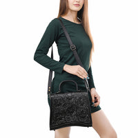 ADBG1517 Western Top Handle Hand-Tooled Leather Floral Messenger Bag