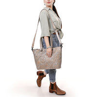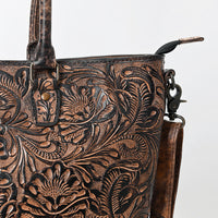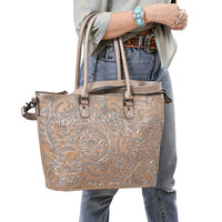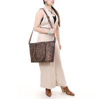 ADBG1519 Floral Embossed Leather Tote Bag - Western Crossbody & Shoulder Style