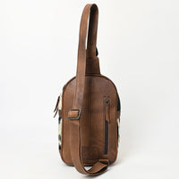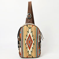 ADBG1522 Southwestern Woven Saddle Blanket & Leather Sling Backpack - Cowhide Accent with Western Buckle