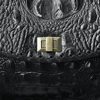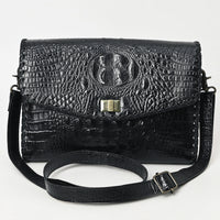 Bold, sleek, and timeless — this black croc-embossed leather crossbody is the definition of rugged elegance. The structured design features a flap closure with a metallic twist-lock clasp, offering both security and style. Its textured finish, rich black hue, and handcrafted whipstitch edge make it an essential piece for any cowgirl with a love for modern Western fashion.