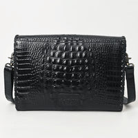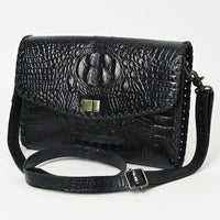 ADBG1526 Black Croc-Embossed Leather Crossbody Bag - Western Structured Flap Purse