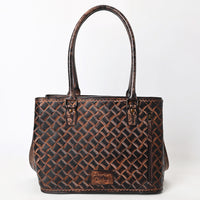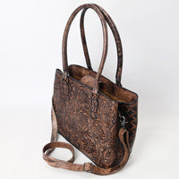 ADBG1532 Metallic Bronze Tooled Leather Tote Bag - All-Over Western Floral Design