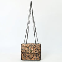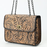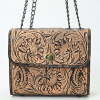 ADBG1534 Tan Floral Hand-Tooled Leather Shoulder Bag - Western Chain Strap Purse
