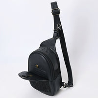 ADBG1538A Black Alligator-Embossed Leather Sling Bag - Western Crossbody Chest Pack