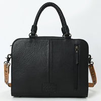 ADBG1551 Black & White Hair-On Hide Tooled Leather Fringe Handbag