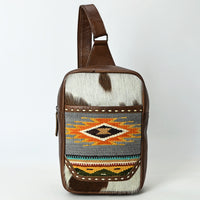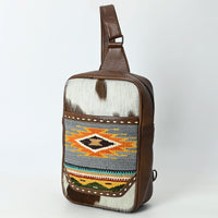 ADBG1554 Southwestern Cowhide & Leather Sling Bag with Woven Aztec Panel