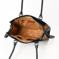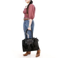 Designed for both style and utility, it comes with sturdy dual top handles and a removable crossbody strap for versatile carry. The spacious interior easily fits a laptop, planner, or travel gear, making it your go-to bag for workdays, rodeo weekends, or daily errands.