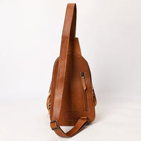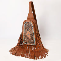 ADBG1568A Hand-Tooled Leather Fringe Sling Bag - Western Floral & Turquoise Inlay