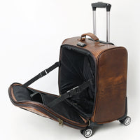 ADBG1571 Cowhide & Tooled Leather Rolling Luggage - Western Carry-On Spinner