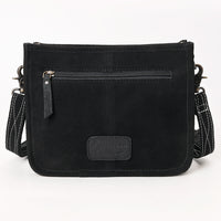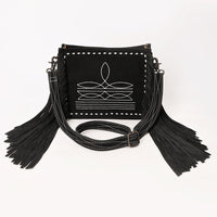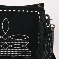 ADBG1572A Black Genuine suede Fringe Crossbody with White Western Stitch